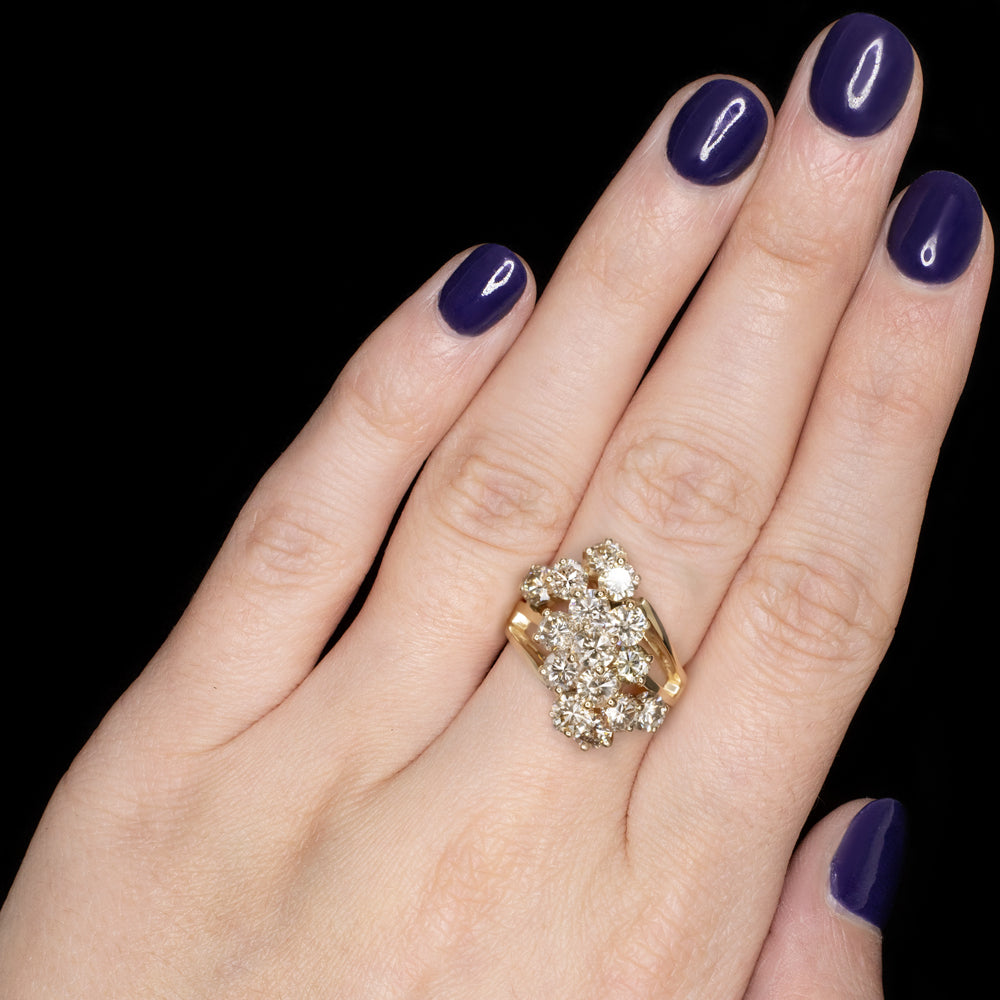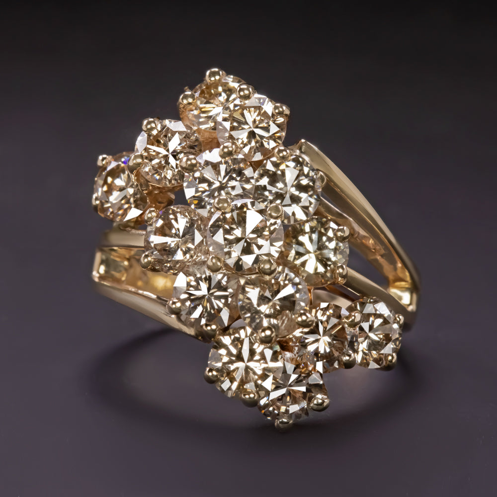 5 CARAT DIAMOND CLUSTER COCKTAIL RING YELLOW GOLD ESTATE NATURAL ROUND CUT 5ct