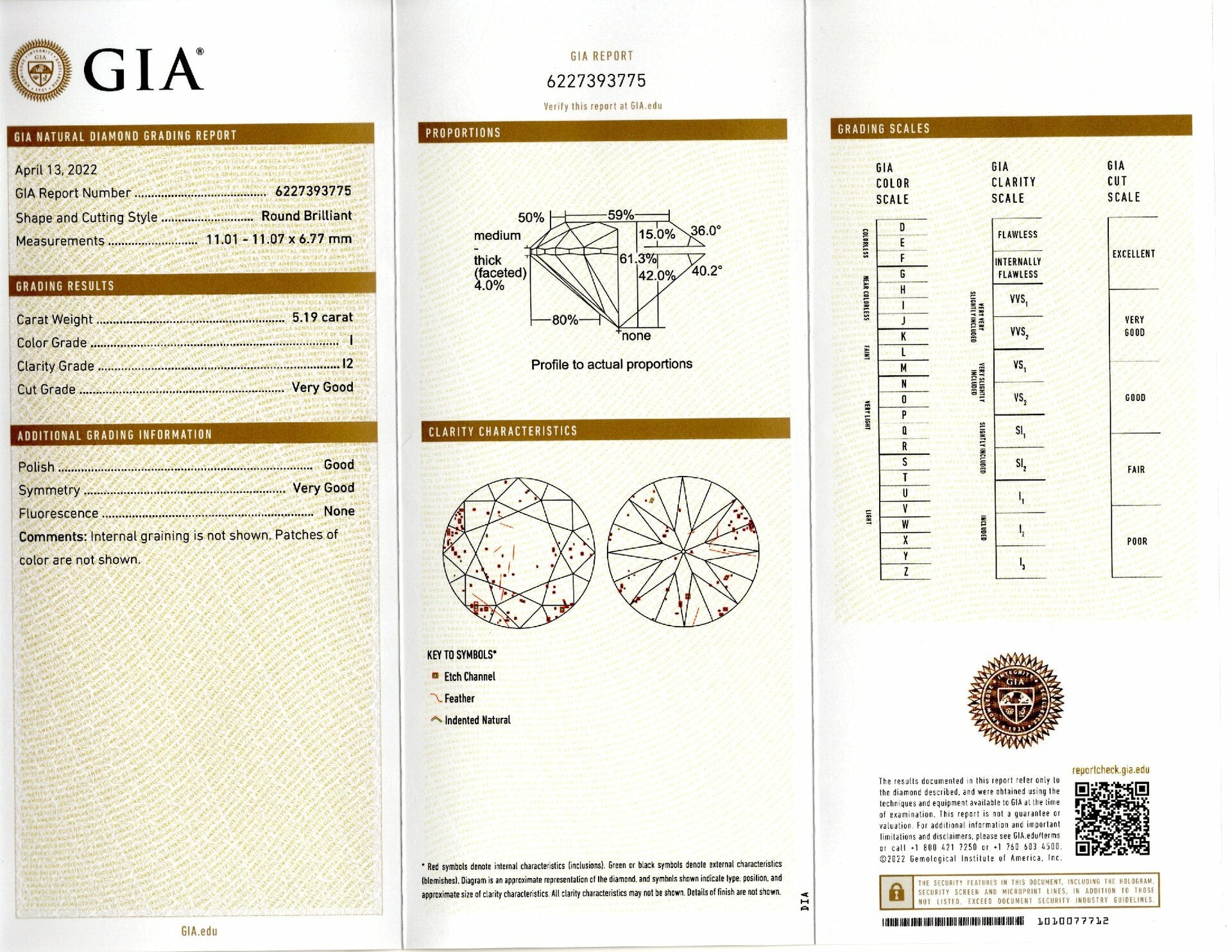 5 CARAT DIAMOND SOLITAIRE ENGAGEMENT RING GIA CERTIFIED NATURAL 5.19ct BEZEL