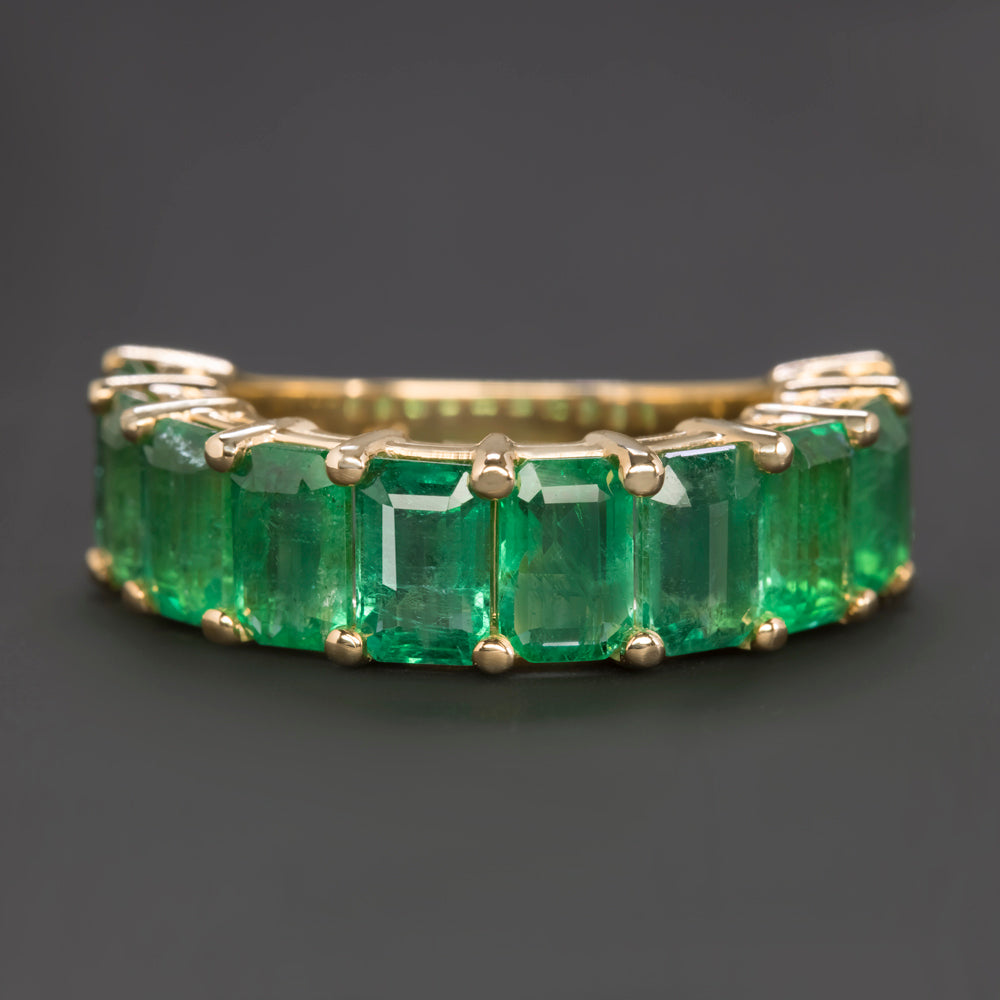 6 CARAT NATURAL EMERALD RING 2/3 ETERNITY BAND 14k WHITE YELLOW GOLD EMERALD CUT