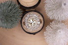 - Beautiful light yellow hue with W-X color. It contrasts beautifully with the white diamond halo