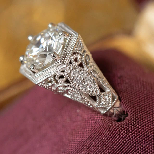 ART DECO DIAMOND SEMI MOUNT FILIGREE 6mm ENGAGEMENT RING SETTING VINTAGE STYLE