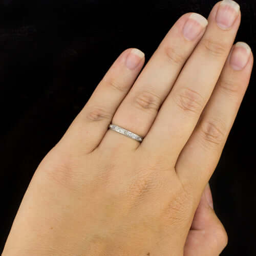 ART DECO PLATINUM WEDDING BAND VINTAGE STYLE 1920s ETCHED RETRO RING ENGRAVED