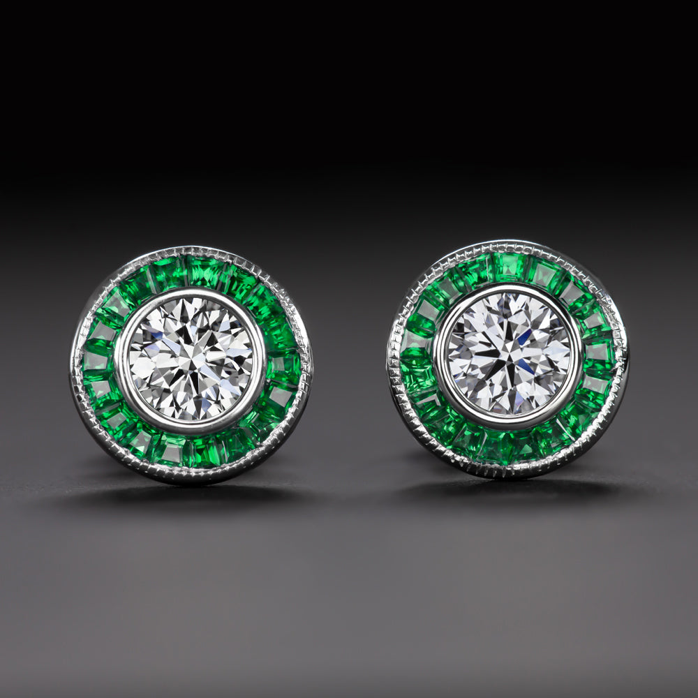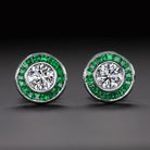 ART DECO STYLE E VS DIAMOND EMERALD STUD EARRINGS ROUND CUT CALIBRE HALO TARGET
