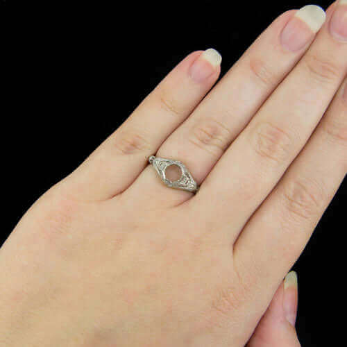 ART DECO STYLE PLATINUM ENGAGEMENT RING SETTING FLORAL MOUNT ENGRAVED ROUND 6MM