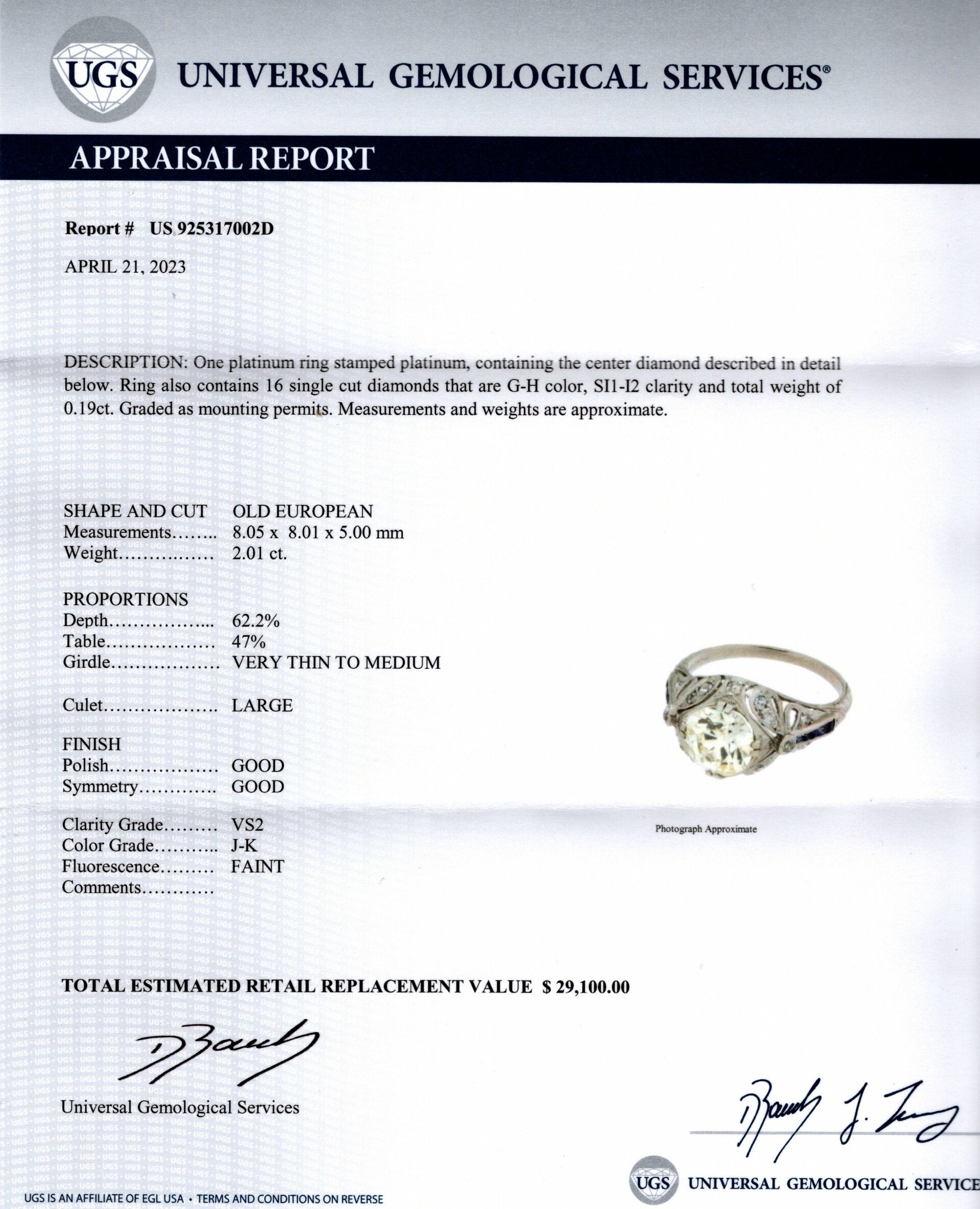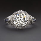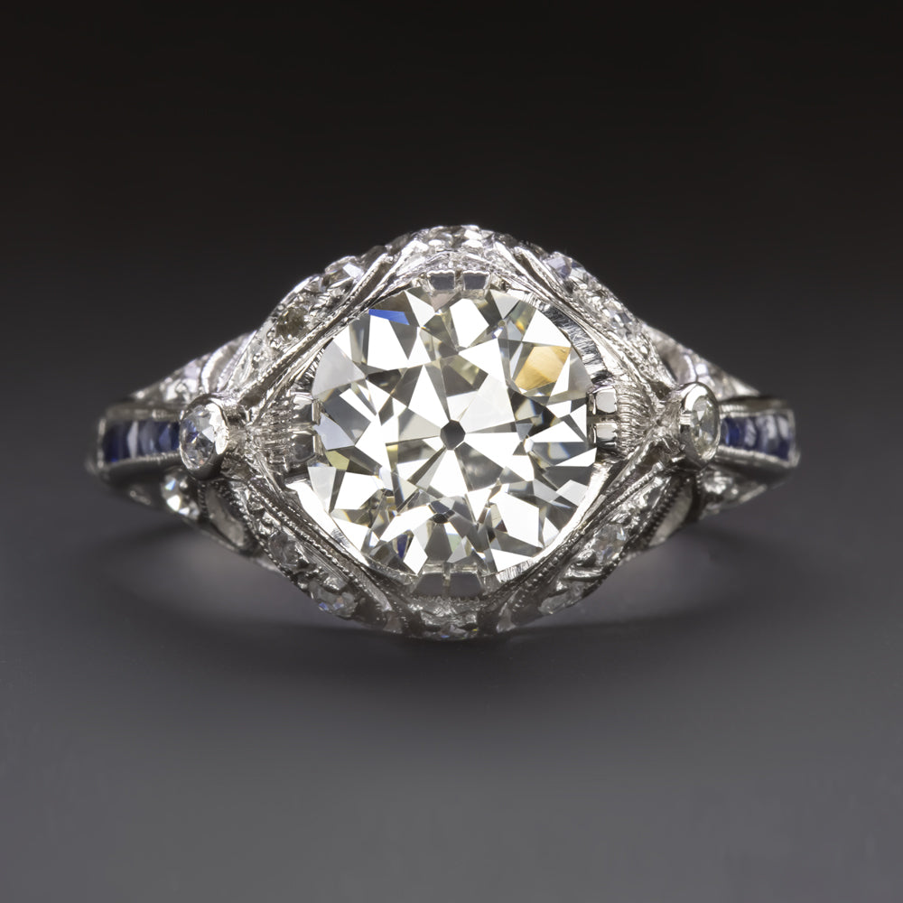 ART DECO VINTAGE DIAMOND ENGAGEMENT RING 2ct OLD EUROPEAN CUT PLATINUM SAPPHIRE