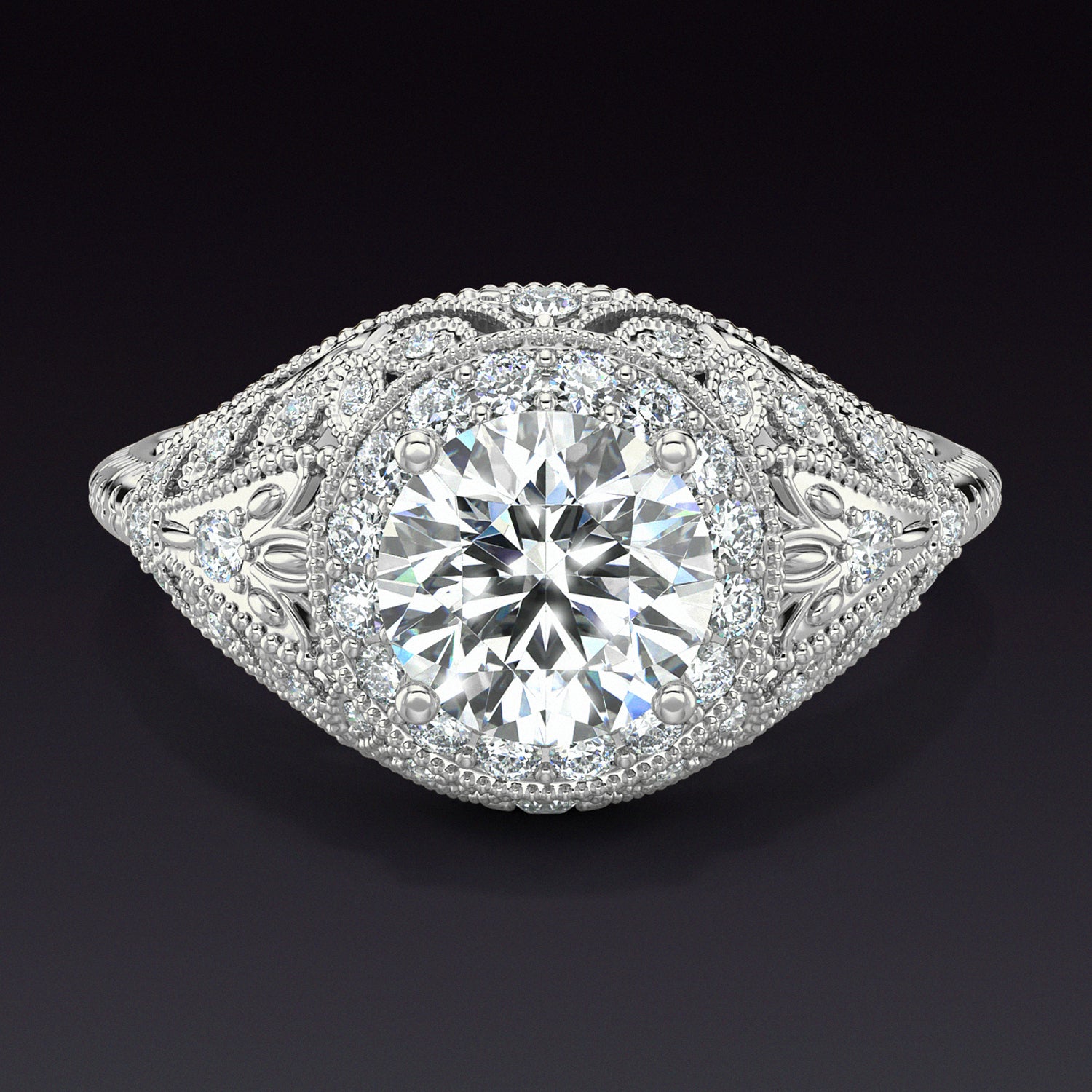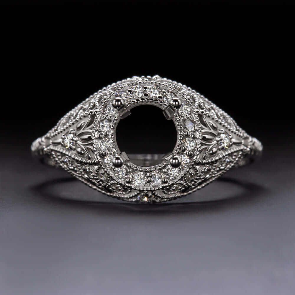 ART DECO VINTAGE STYLE HALO ROUND ENGAGEMENT DIAMOND SETTING WHITE GOLD RING