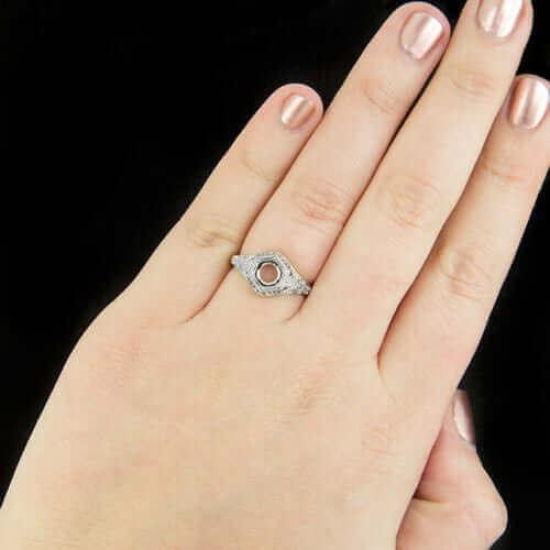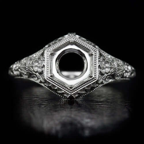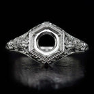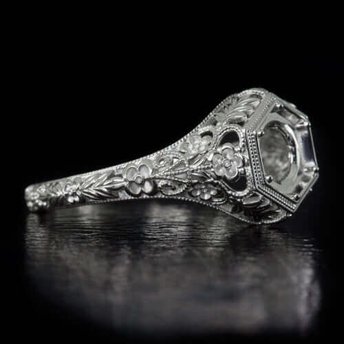 ART NOUVEAU ENGAGEMENT RING SETTING VINTAGE STYLE FLORAL SEMI-MOUNT WHITE GOLD