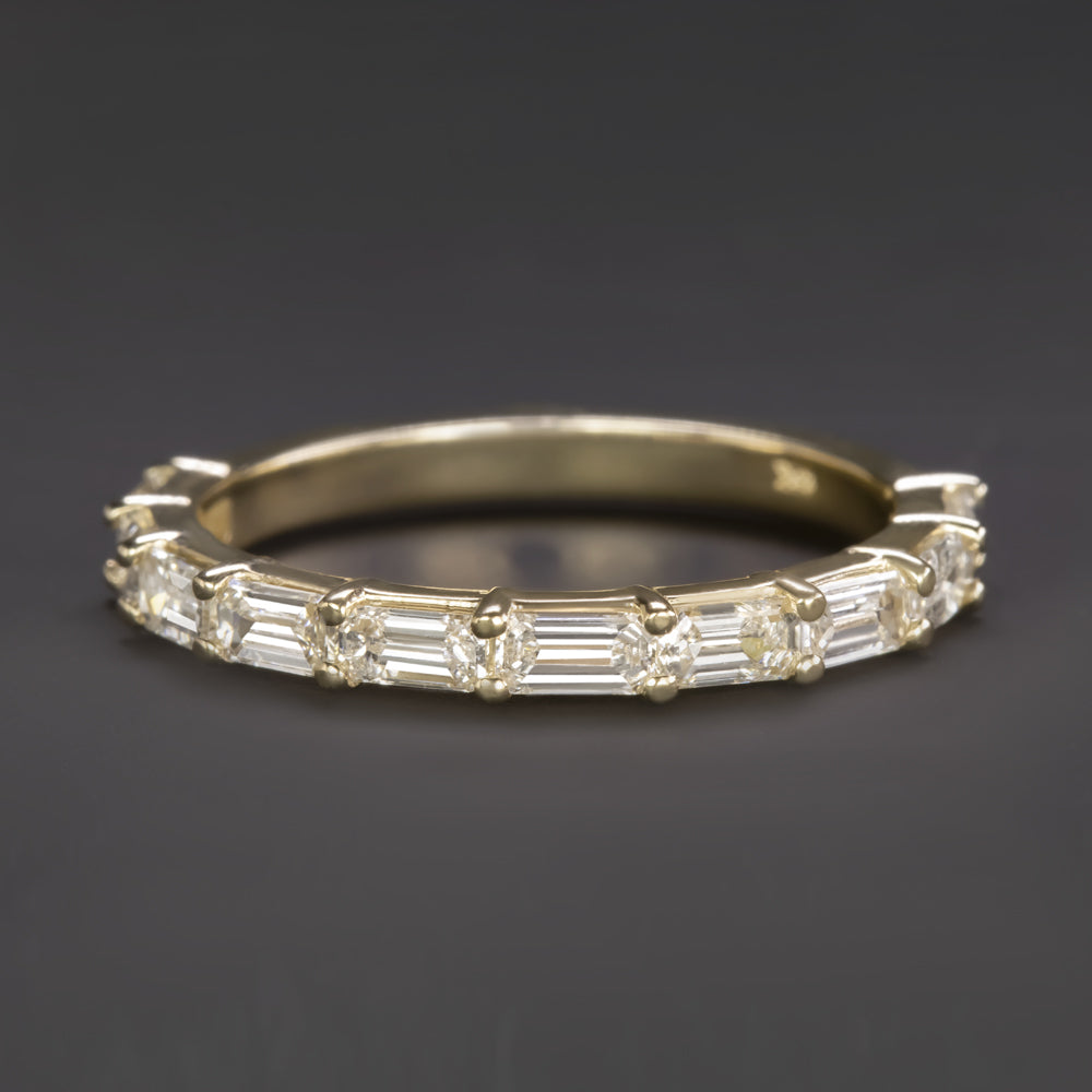 BAGUETTE DIAMOND WEDDING BAND STACKING RING 14k YELLOW GOLD EAST WEST 0.90ct
