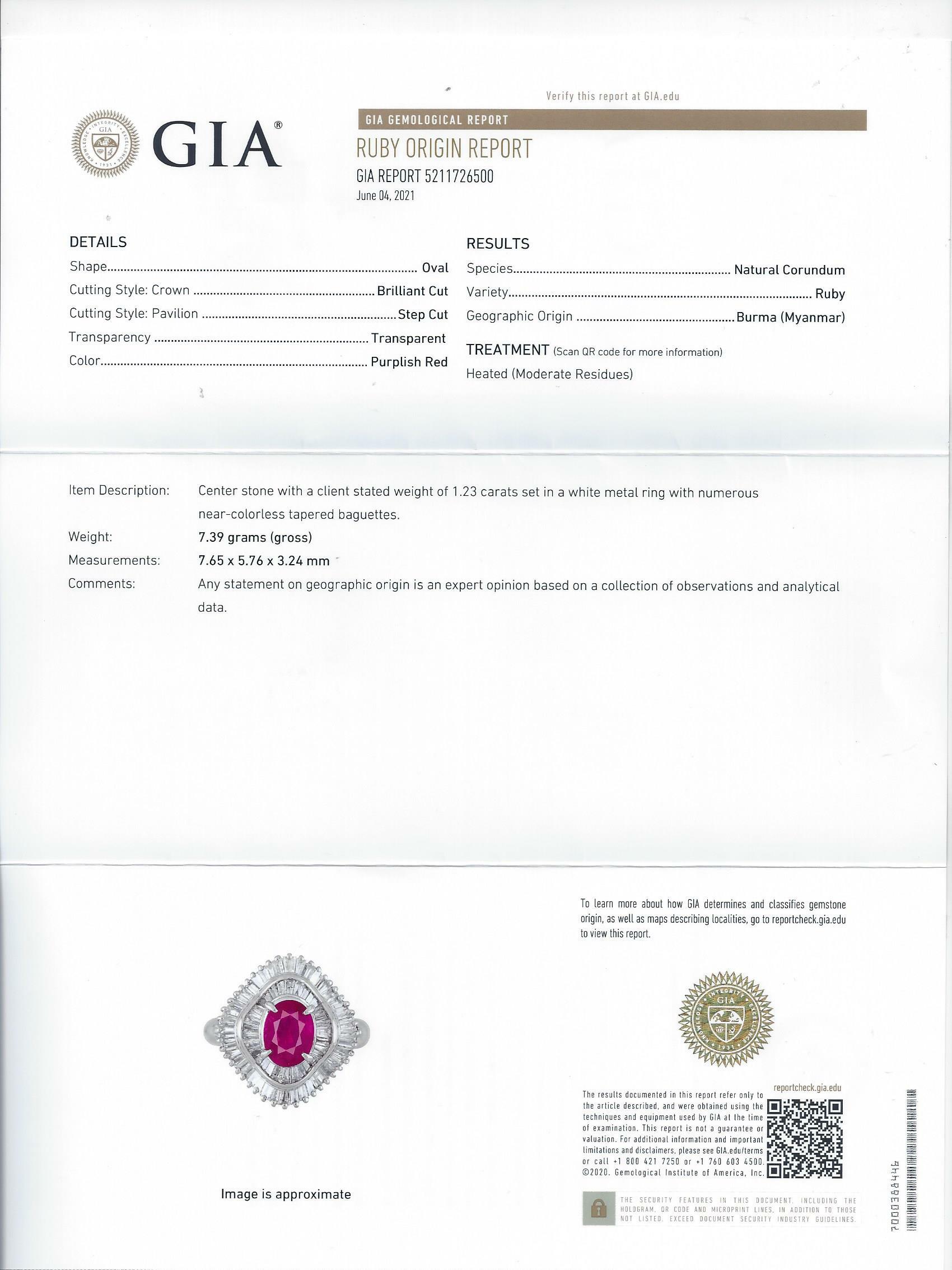- 1.23ct ruby is excellent quality with a sought after geographic origin of Myanmar (Burma)