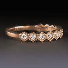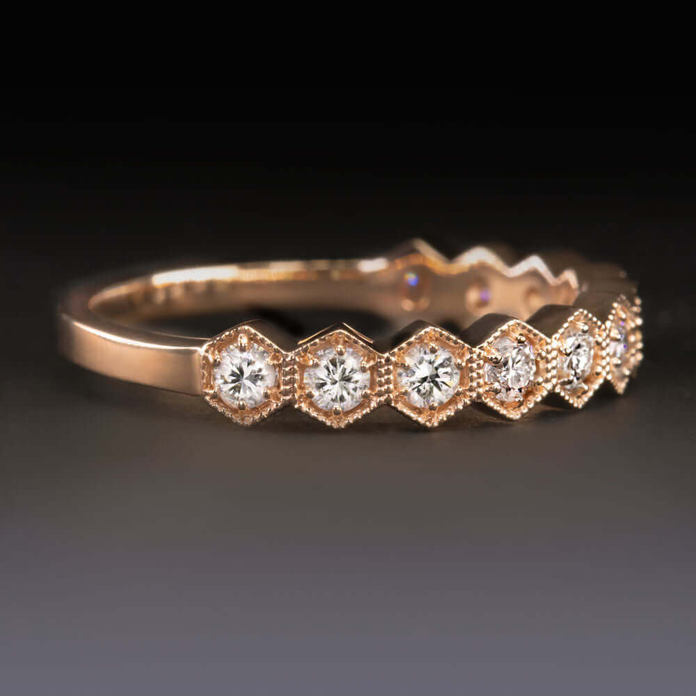 DIAMOND 14K ROSE GOLD WEDDING BAND STACKING RING HONEYCOMB VINTAGE STYLE HEXAGON
