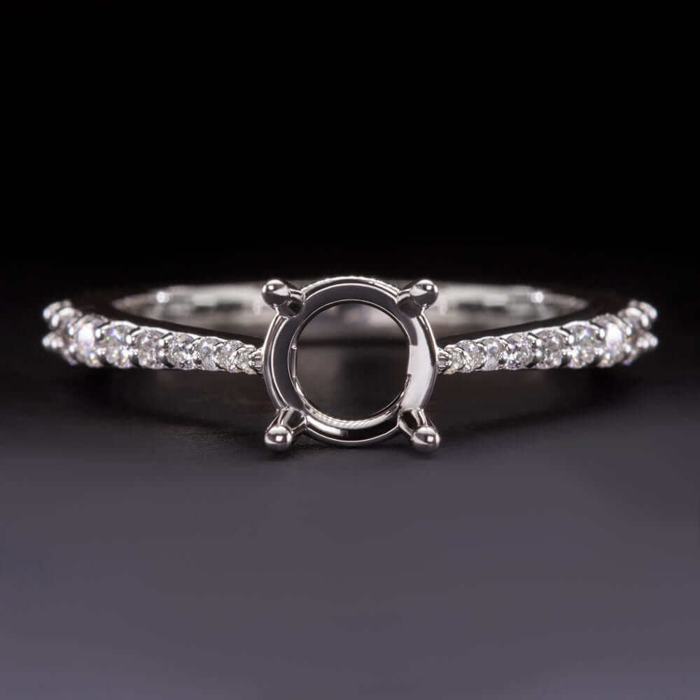 DIAMOND 6mm-7mm ROUND CT ENGAGEMENT RING SETTING 1ct MODERN PAVE BAND SEMI-MOUNT