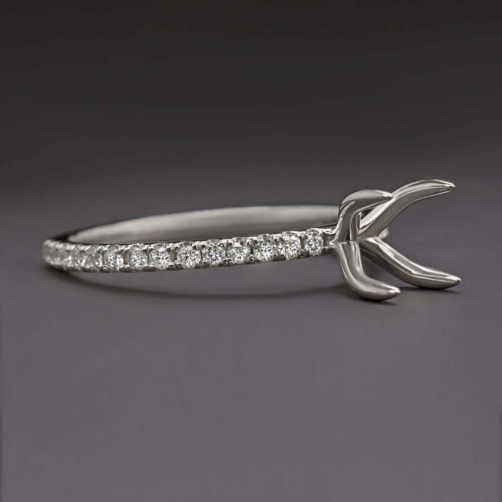 This classic diamond accented semi-mount ring is made-to-order and beautifully designed to showcase a diamond or gemstone of your choice. The slender yet sturdy 14k white gold shank shimmers with pave set diamonds for a fresh and flattering feminine look. The diamonds are all very well cut, so they sparkle with remarkable, vibrant brilliance!