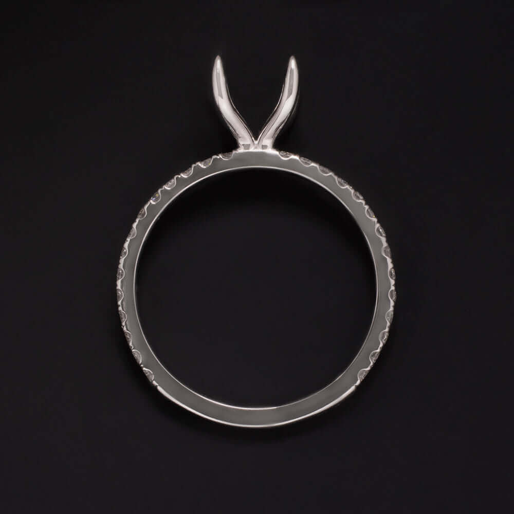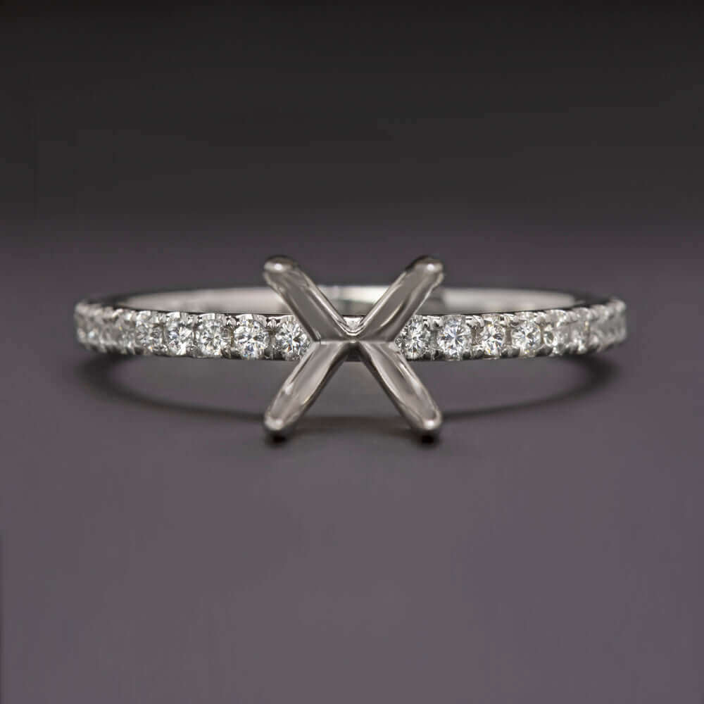 DIAMOND ENGAGEMENT RING SETTING 6.5mm ROUND CUT PAVE BAND WHITE GOLD SEMI MOUNT
