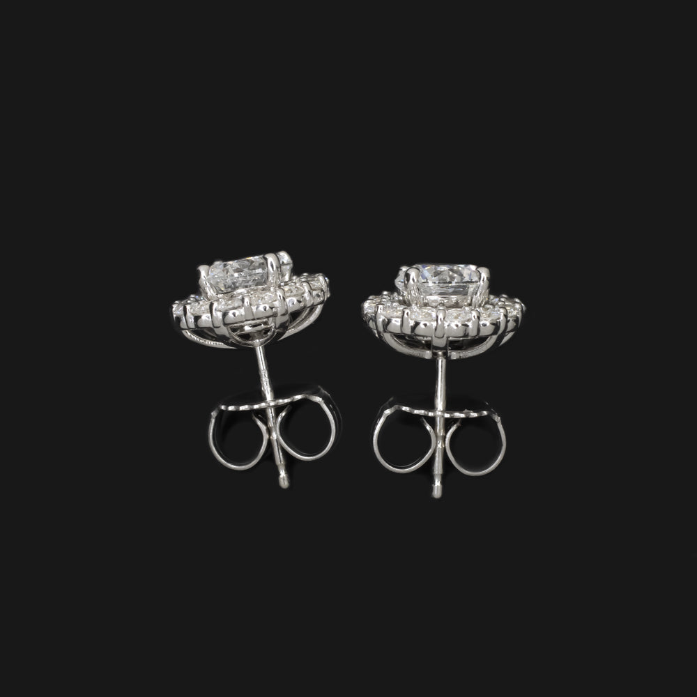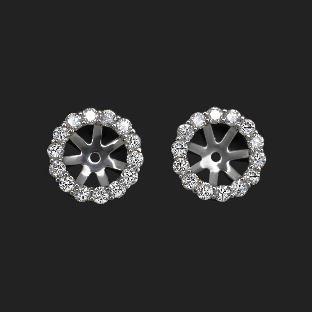 DIAMOND HALO STUD EARRING JACKETS 6mm ROUND 14k WHITE GOLD NATURAL ENHANCERS