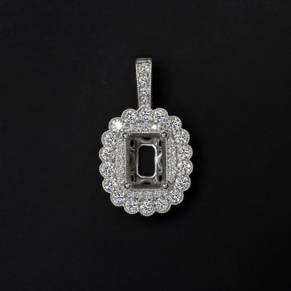DIAMOND SEMI MOUNT PENDANT SETTING RADIANT EMERALD CUT SCALLOPED HALO NECKLACE