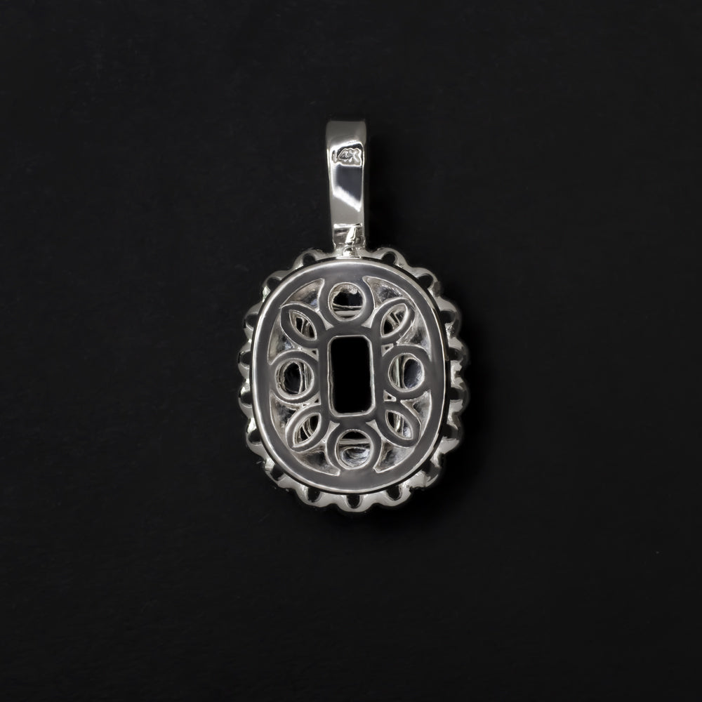 This diamond semi mount pendant has a double halo design and will serve as the perfect backdrop for the center stones of your choosing.