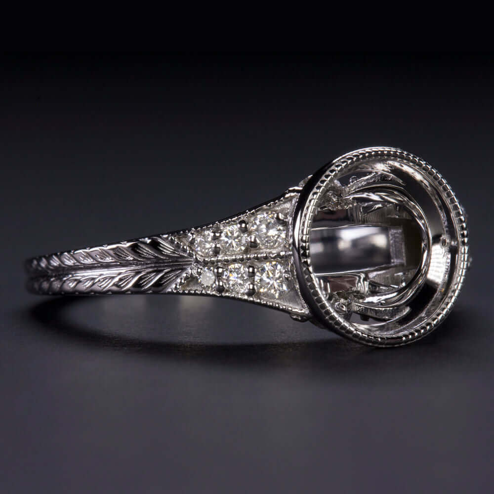 DIAMOND WHITE GOLD VINTAGE STYLE ENGAGEMENT RING SETTING ROUND BEZEL ART DECO