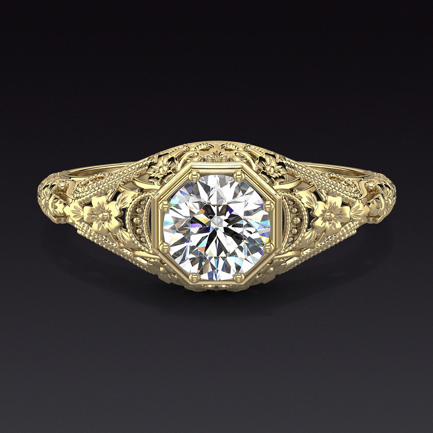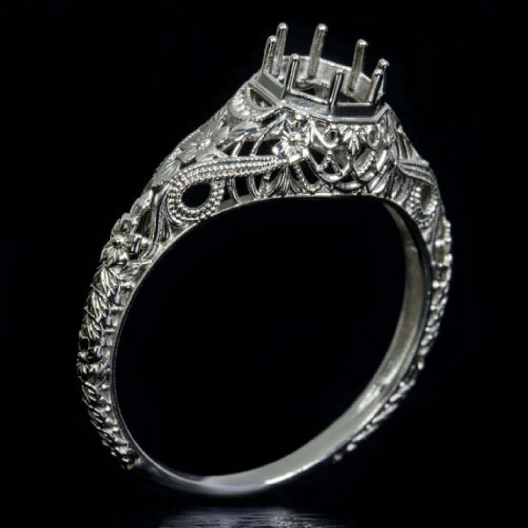 FILIGREE ART DECO VINTAGE STYLE SEMI-MOUNT 14K ENGAGEMENT RING SETTING SOLITAIRE