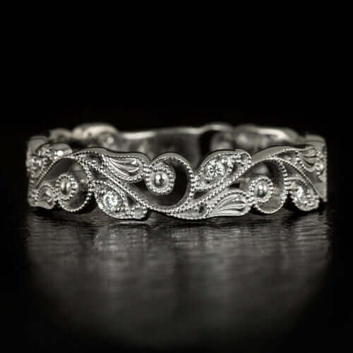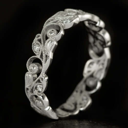 FILIGREE ART NOUVEAU DIAMOND WEDDING BAND VINTAGE STYLE FLORAL RING ENGRAVED