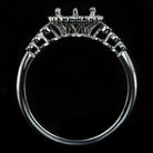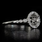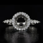 Featured here is an elegant diamond ring setting designed with old world luxury inspiration! Once set with a center stone, this gorgeous semi-mount will make a wonderful engagement or cocktail ring! Twenty-eight sparkling diamonds are securely prong and bezel set in this mounting. The diamonds are all white, showing no color, and they are also 100% clean to the naked eye with no visible inclusions. The center mounting will fit a round diamond or gemstone that measures between 5.5mm and 6.7mm with an ideal size of 6mm to 6.5mm. It can also fit an antique elongated cushion or old European cut. If you are looking for the perfect centerpiece for this ring, please contact us for our loose stone inventory! The ring is made from solid platinum and it measures 9mm across (north-south) by 5mm from the finger to the top of the ring. This wonderful old world inspired engagement ring setting has a classic design that will never go out of style! This design will only be found here so don't miss your chance!