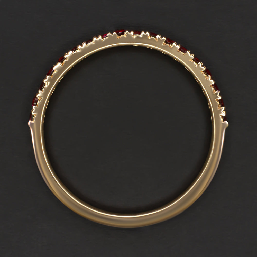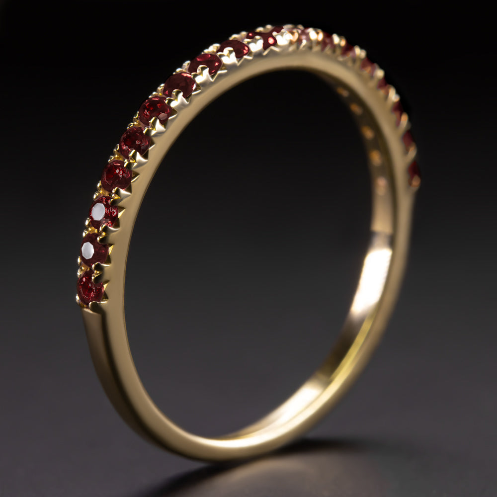 GARNET 14k YELLOW GOLD BAND HALF ETERNITY RING NATURAL RED GEMSTONE STACKING