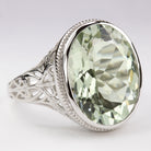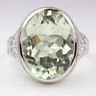 GREEN AMETHYST STERLING SILVER RING VINTAGE STYLE OVAL FILIGREE GEM SOLITAIRE