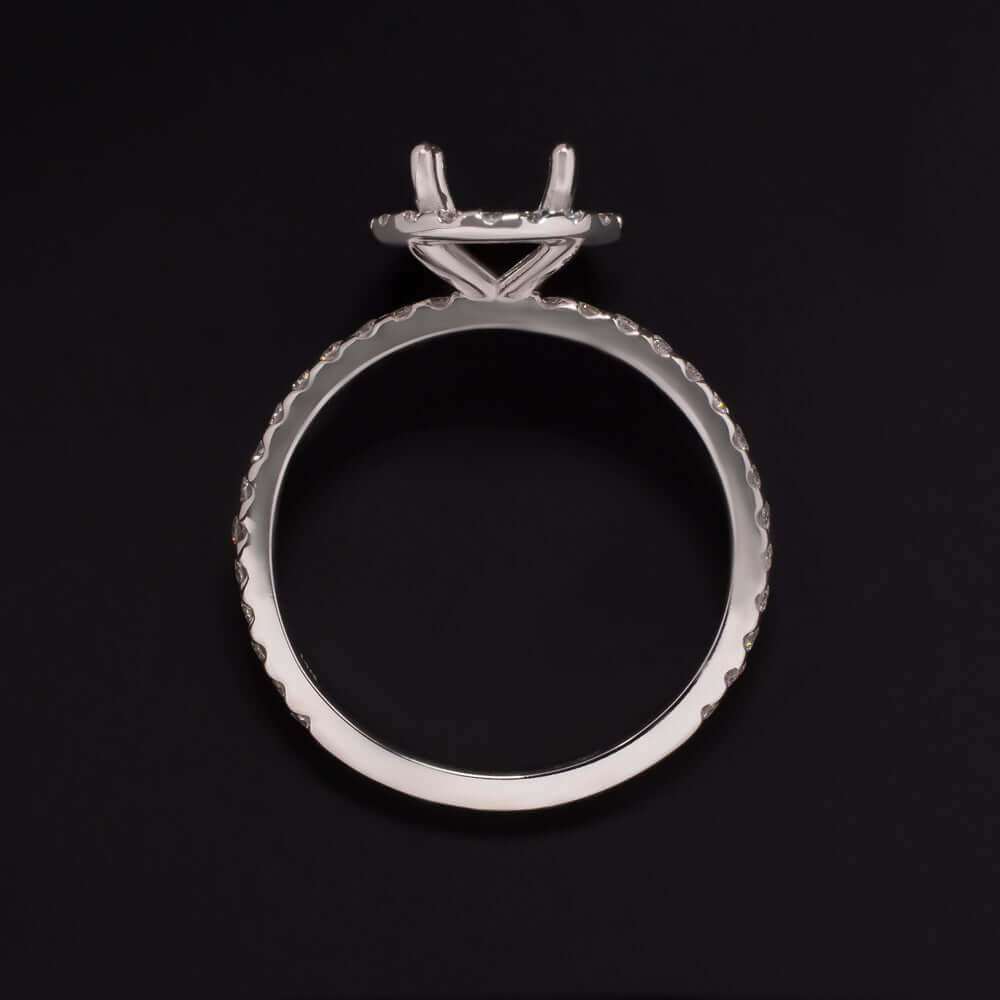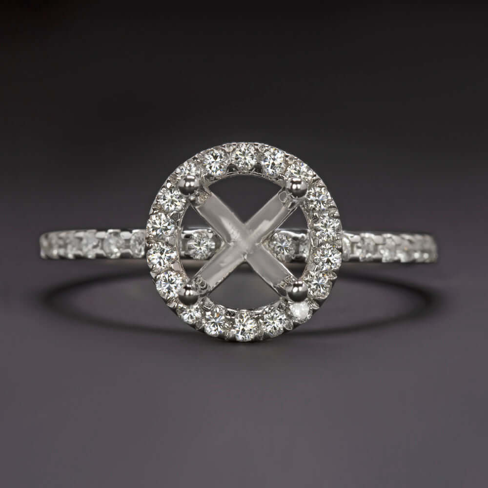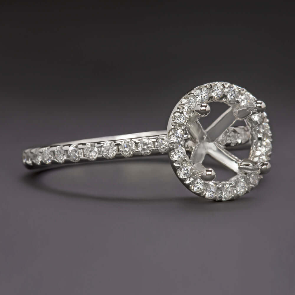 HALO DIAMOND ENGAGEMENT RING SETTING 6.5mm ROUND PAVE BAND WHITE GOLD SEMI MOUNT