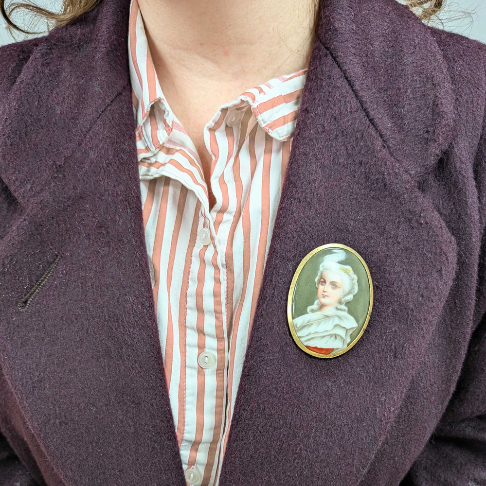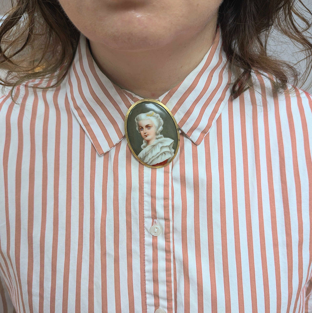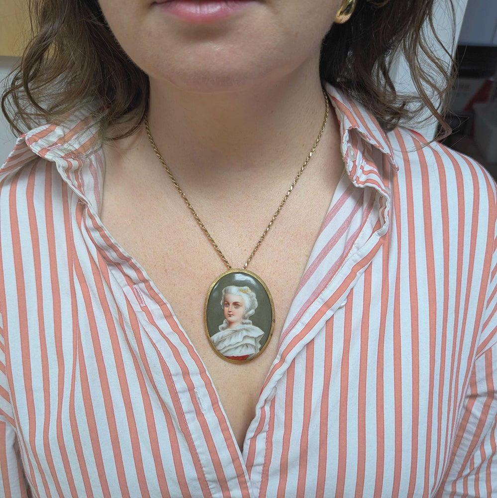 HAND PAINTED VINTAGE PORTRAIT PENDANT NECKLACE CAMEO VICTORIAN LADY