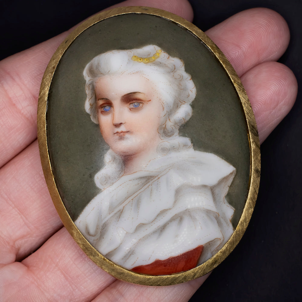 This listing is for the portrait only. It is shown set in gold and as a pin/necklace for inspiration. We are a full service jeweler and can create a finished piece for you using this portrait. Please contact us if you would like to have this portrait set.