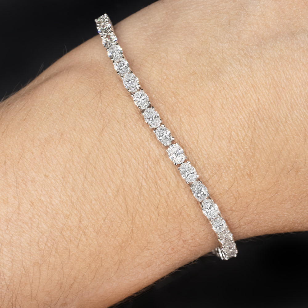 LAB CREATED DIAMOND TENNIS BRACELET OVAL SHAPE CUT 7.75ct CLASSIC 14k WHITE GOLD