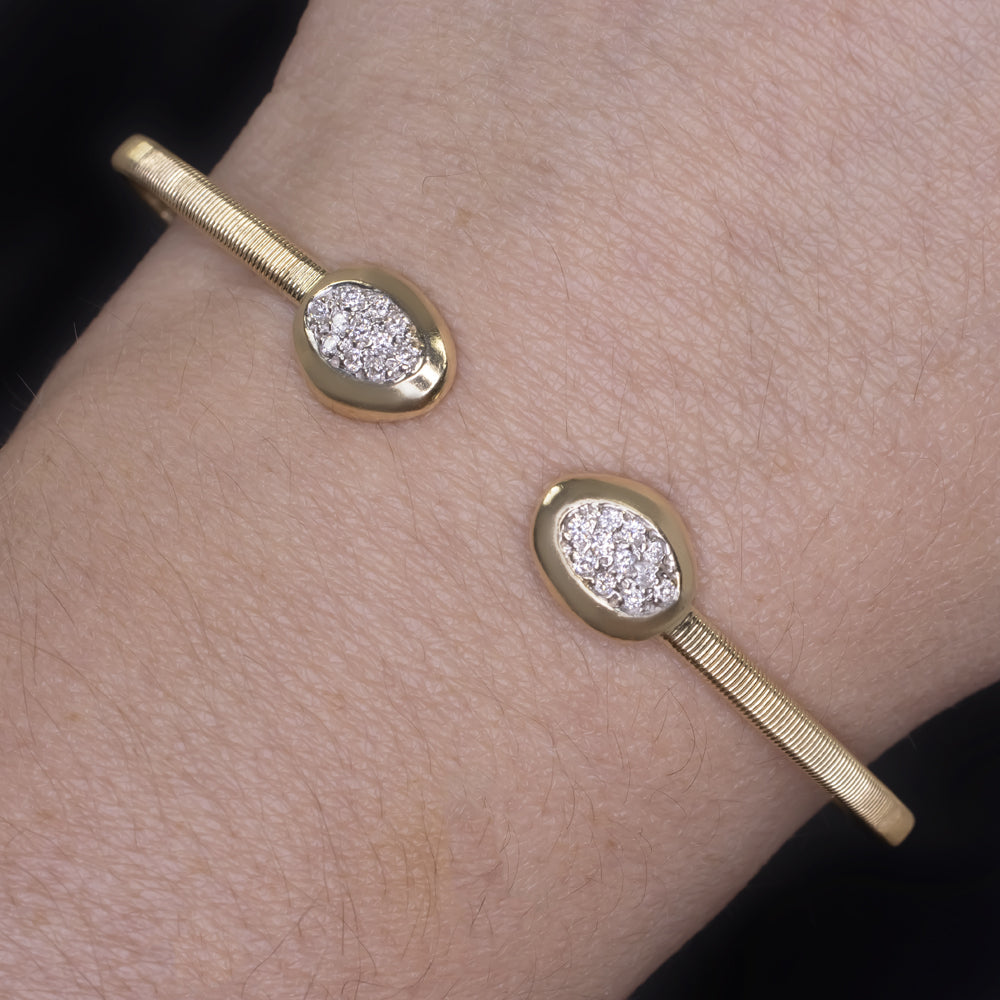 NATURAL DIAMOND 14k YELLOW GOLD CUFF BRACELET BANGLE 9.4gm ESTATE GIFT JEWELRY