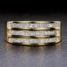 NATURAL DIAMOND COCKTAIL BAND WIDE 3 ROW RING PRINCESS CUT 1 CARAT YELLOW GOLD