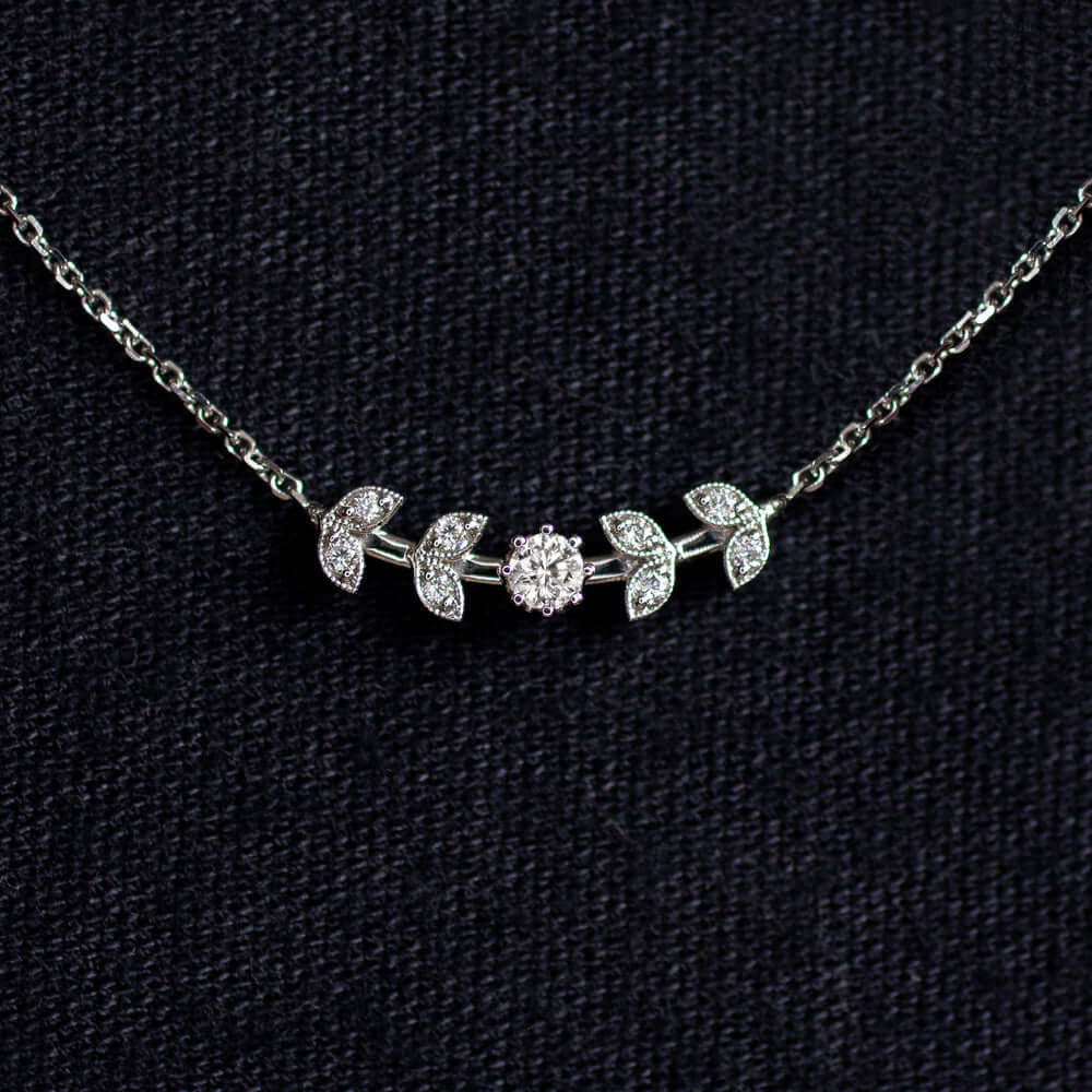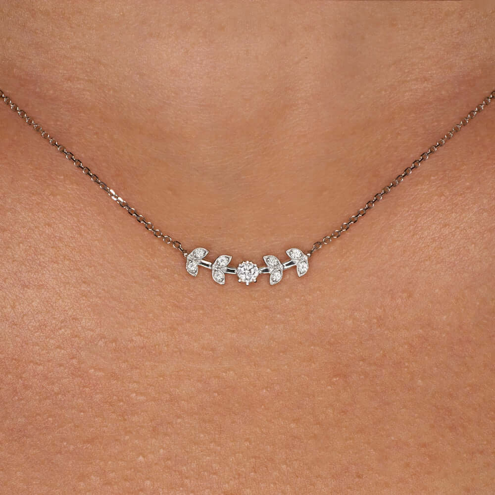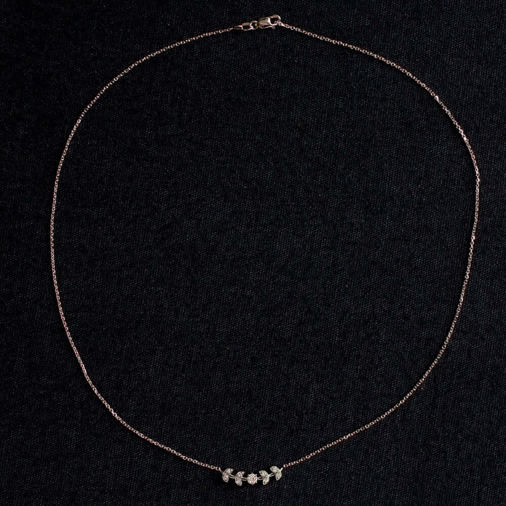 NATURAL DIAMOND FLORAL NECKLACE DAINTY PENDANT WHITE GOLD BRANCH LEAF PENDANT WG