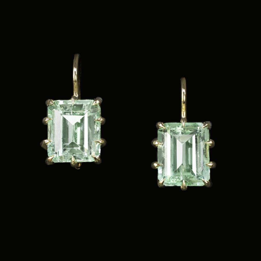 These emerald drop earrings offer an elegant and classic look featuring a substantial 5.67ct pair of mint green emeralds