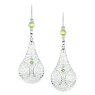 PERIDOT FILIGREE EARRINGS STERLING SILVER DANGLE TEARDROP VINTAGE STYLE GREEN