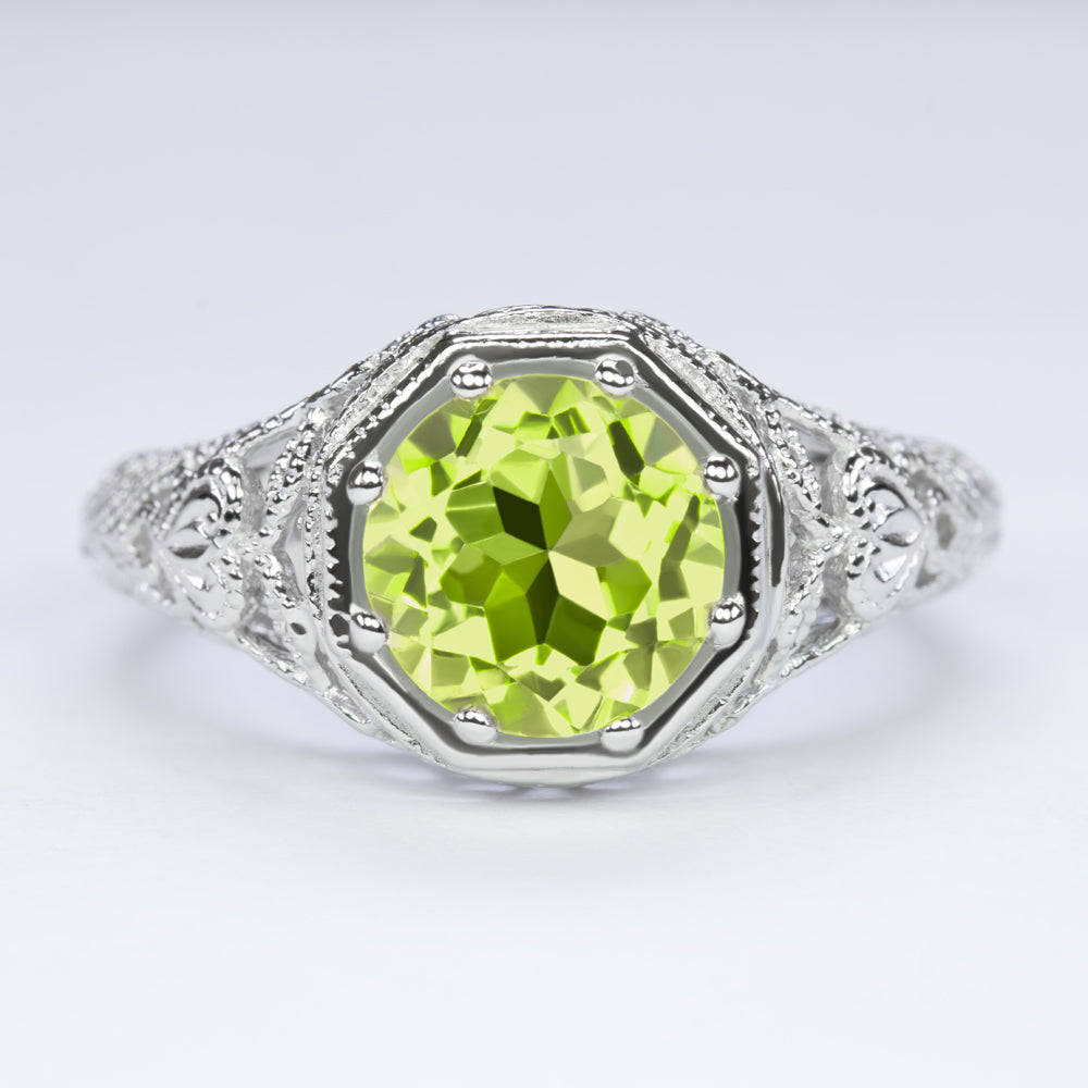 PERIDOT STERLING SILVER RING VINTAGE STYLE ART DECO FILIGREE SOLITAIRE ROUND CUT