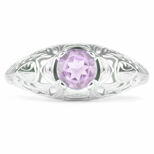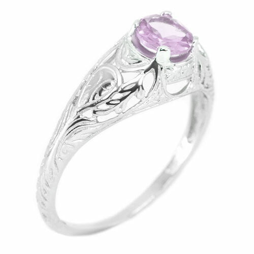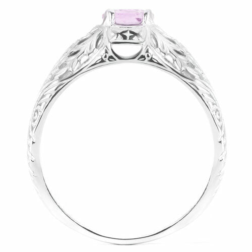 PINK AMETHYST STERLING SILVER VINTAGE STYLE SOLITAIRE RING FLORAL PROMISE PURPLE