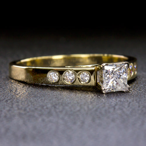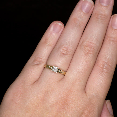 PRINCESS CUT DIAMOND ENGAGEMENT RING 14k YELLOW GOLD NATURAL FLUSH SET ACCENTS