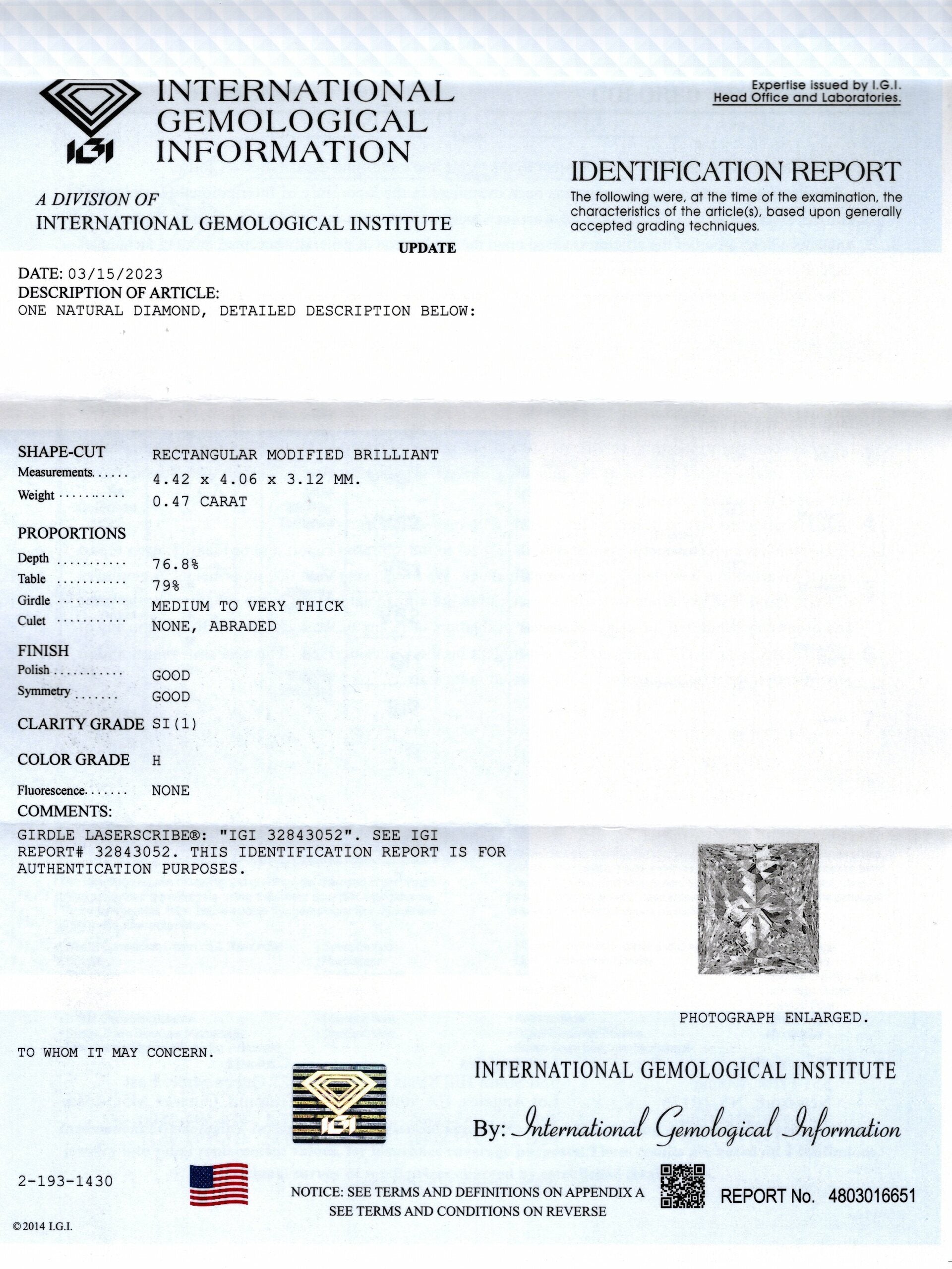PRINCESS CUT DIAMOND ENGAGEMENT RING IGI CERTIFIED H SI1 SOLITAIRE WHITE GOLD