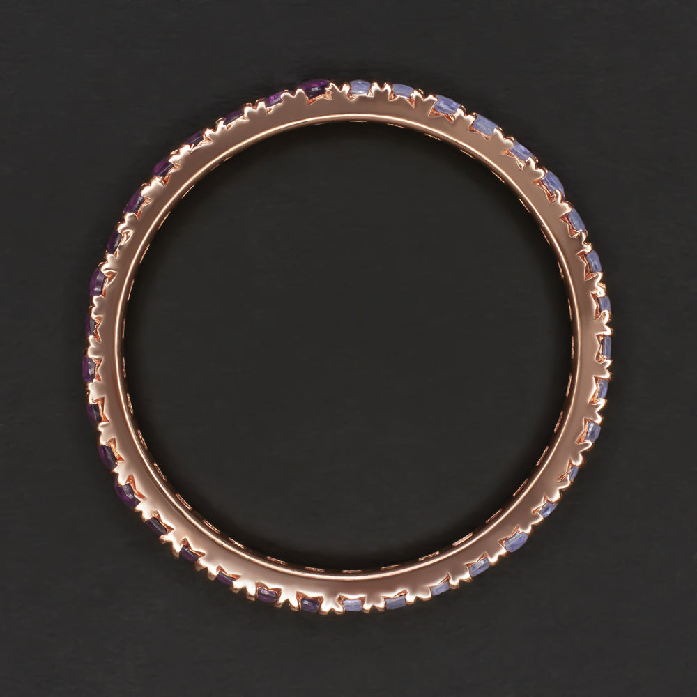 RHODOLITE GARNET TANZANITE 14K ROSE GOLD ETERNITY RING HALF & HALF BAND Size 6