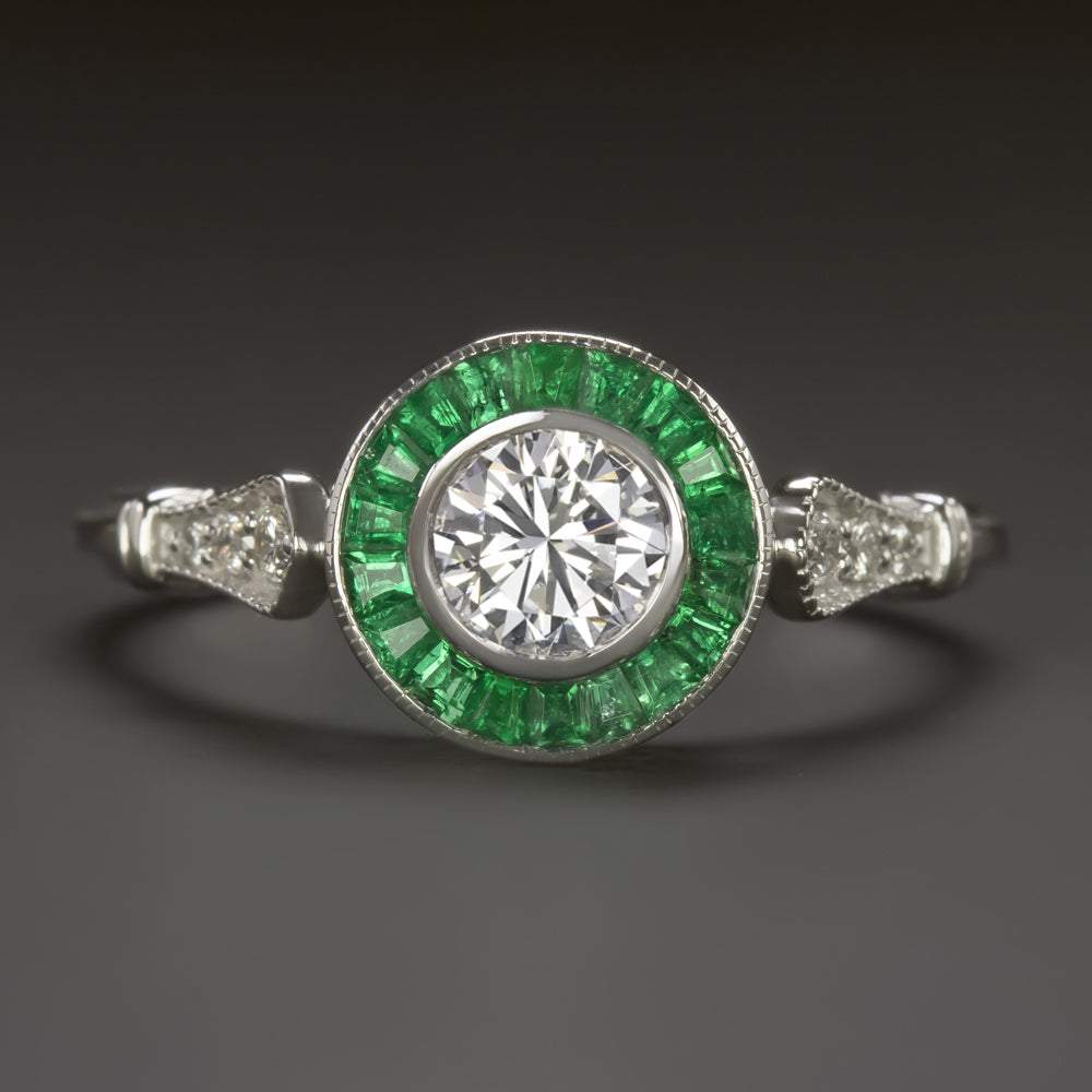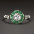 ROUND CUT DIAMOND EMERALD ENGAGEMENT RING ART DECO VINTAGE STYLE TARGET HALO