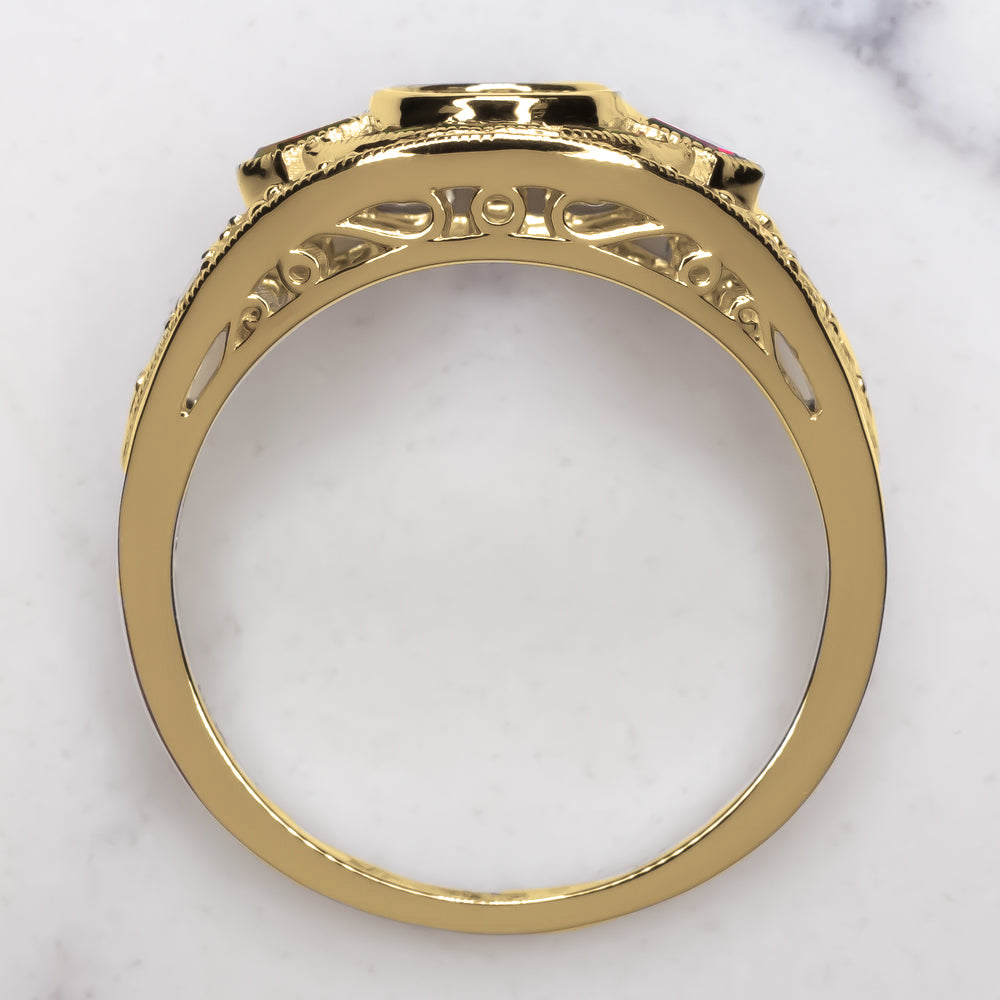 RUBY DIAMOND ENGAGEMENT RING SETTING GOLD ROUND VINTAGE STYLE ART DECO BEZEL