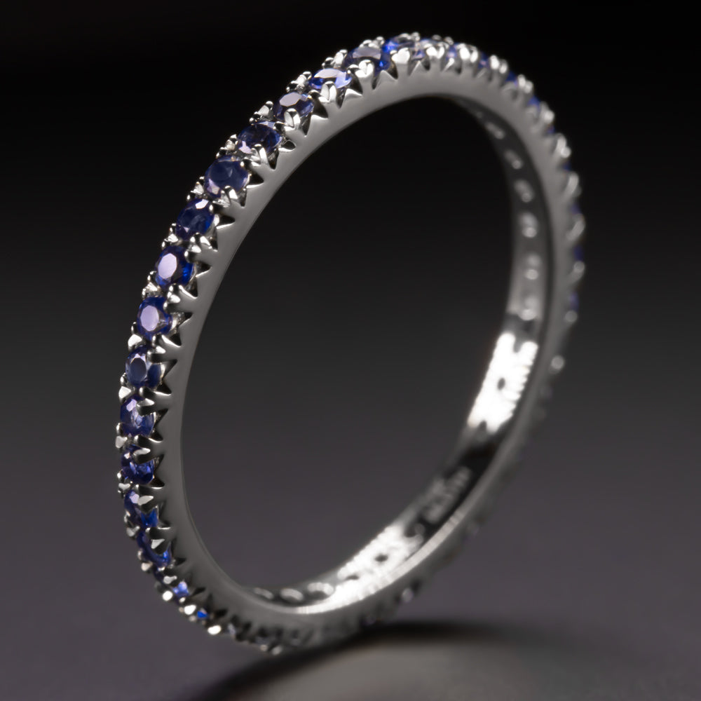 SAPPHIRE 14K WHITE GOLD ETERNITY RING STACKING WEDDING BAND NATURAL BLUE GEM