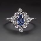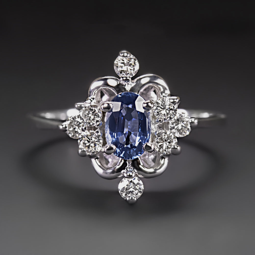 SAPPHIRE DIAMOND COCKTAIL RING 14k WHITE GOLD NATURAL CLUSTER HALO BALLERINA