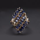 SAPPHIRE DIAMOND COCKTAIL RING 3ct CLUSTER STATEMENT NATURAL 14k YELLOW GOLD