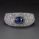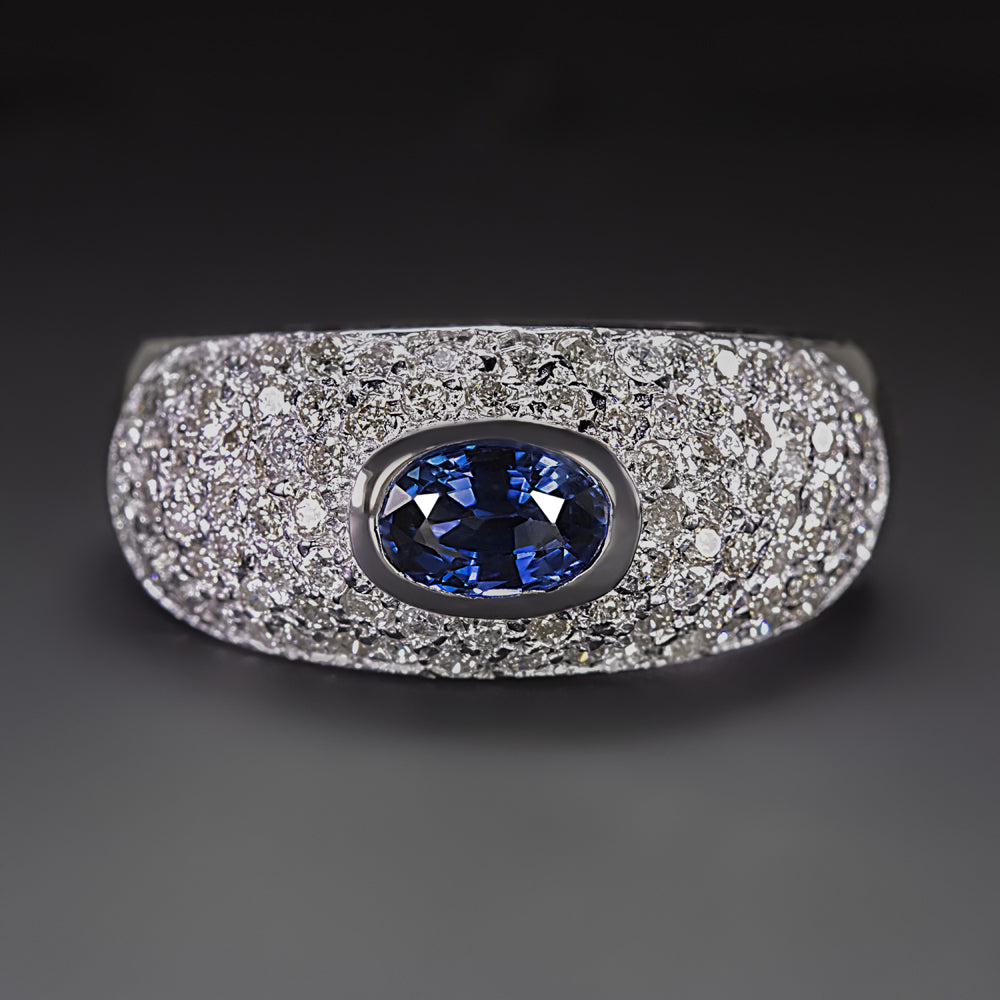 SAPPHIRE DIAMOND COCKTAIL RING WIDE DOME PAVE 14k WHITE GOLD NATURAL 1.55ctw