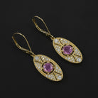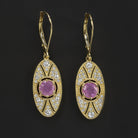 PINK SAPPHIRE DIAMOND DANGLE EARRINGS 14k YELLOW GOLD VINTAGE STYLE OVAL DROP