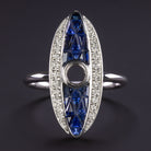 SAPPHIRE DIAMOND RING SETTING VINTAGE STYLE NAVETTE WHITE GOLD COCKTAIL MOUNT