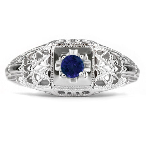 SAPPHIRE STERLING SILVER VINTAGE STYLE COCKTAIL RING FILIGREE PROMISE NATURAL