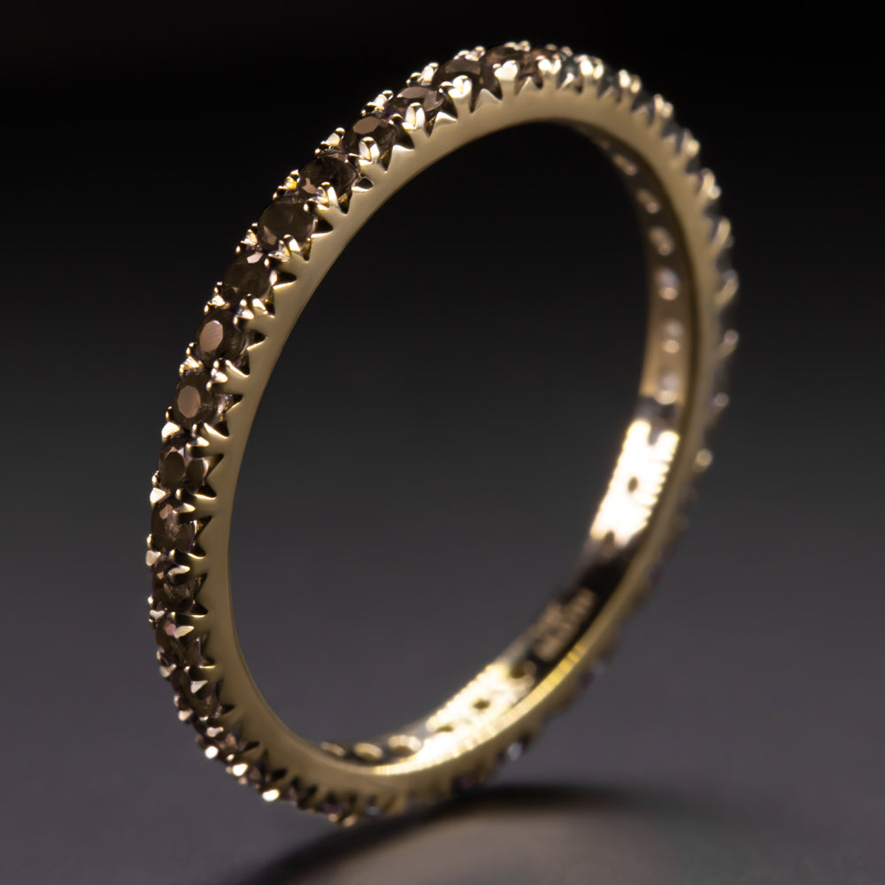 SMOKY QUARTZ 14K YELLOW GOLD ETERNITY RING STACKING WEDDING BAND - Size 6.5